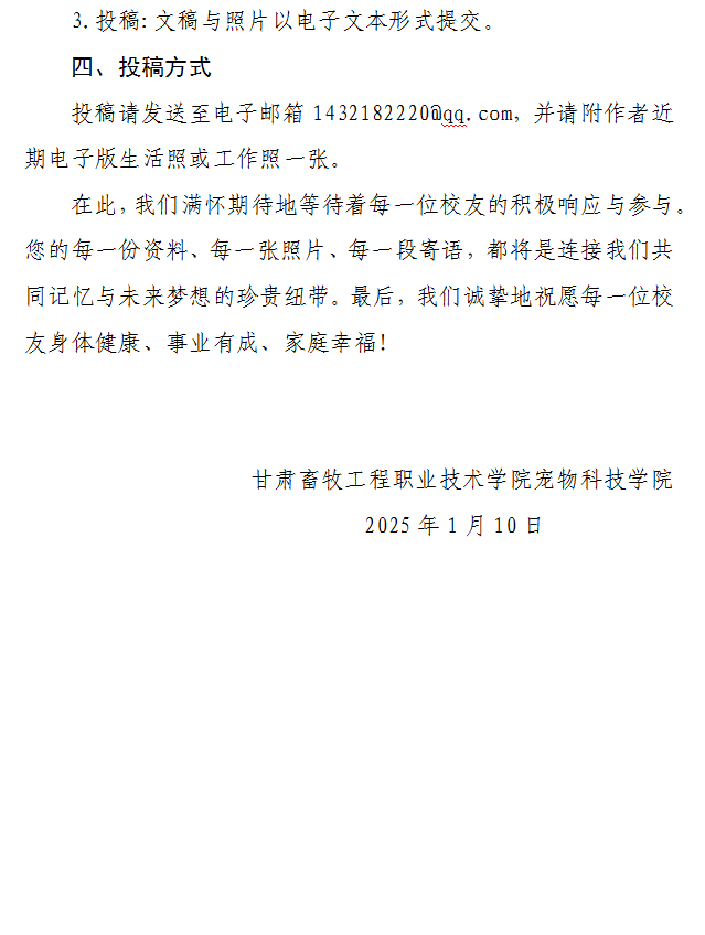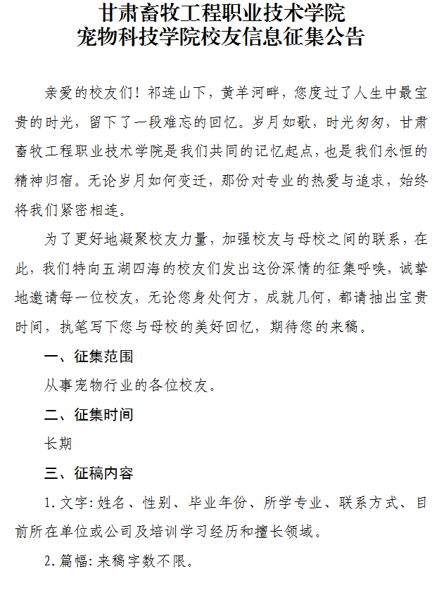 甘肃畜牧工程职业技术学院宠物科技学院校友信息征集公告